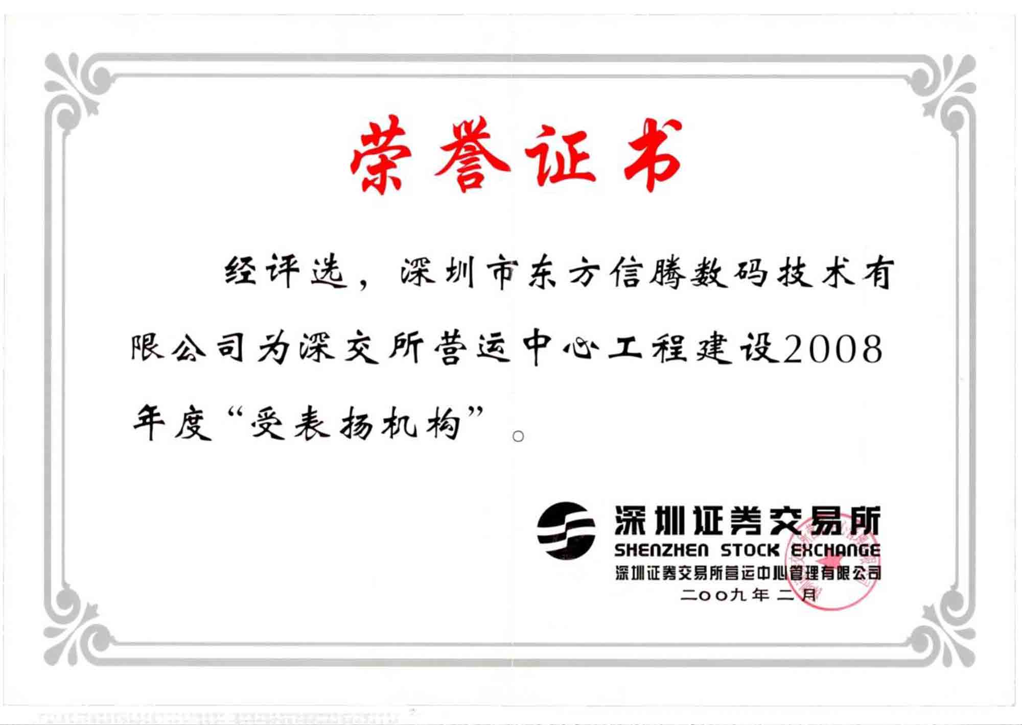 • 深交所营运中心工程建设2008 年度“受表扬机构 ”