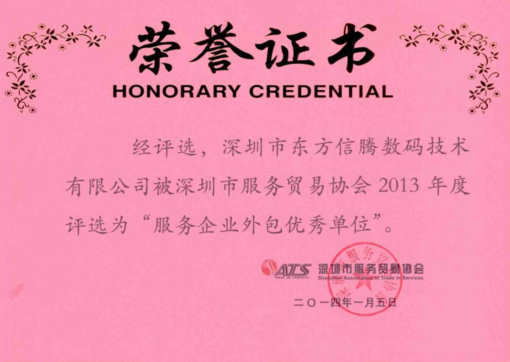 2012年度服务企业外包优.秀单位"称号