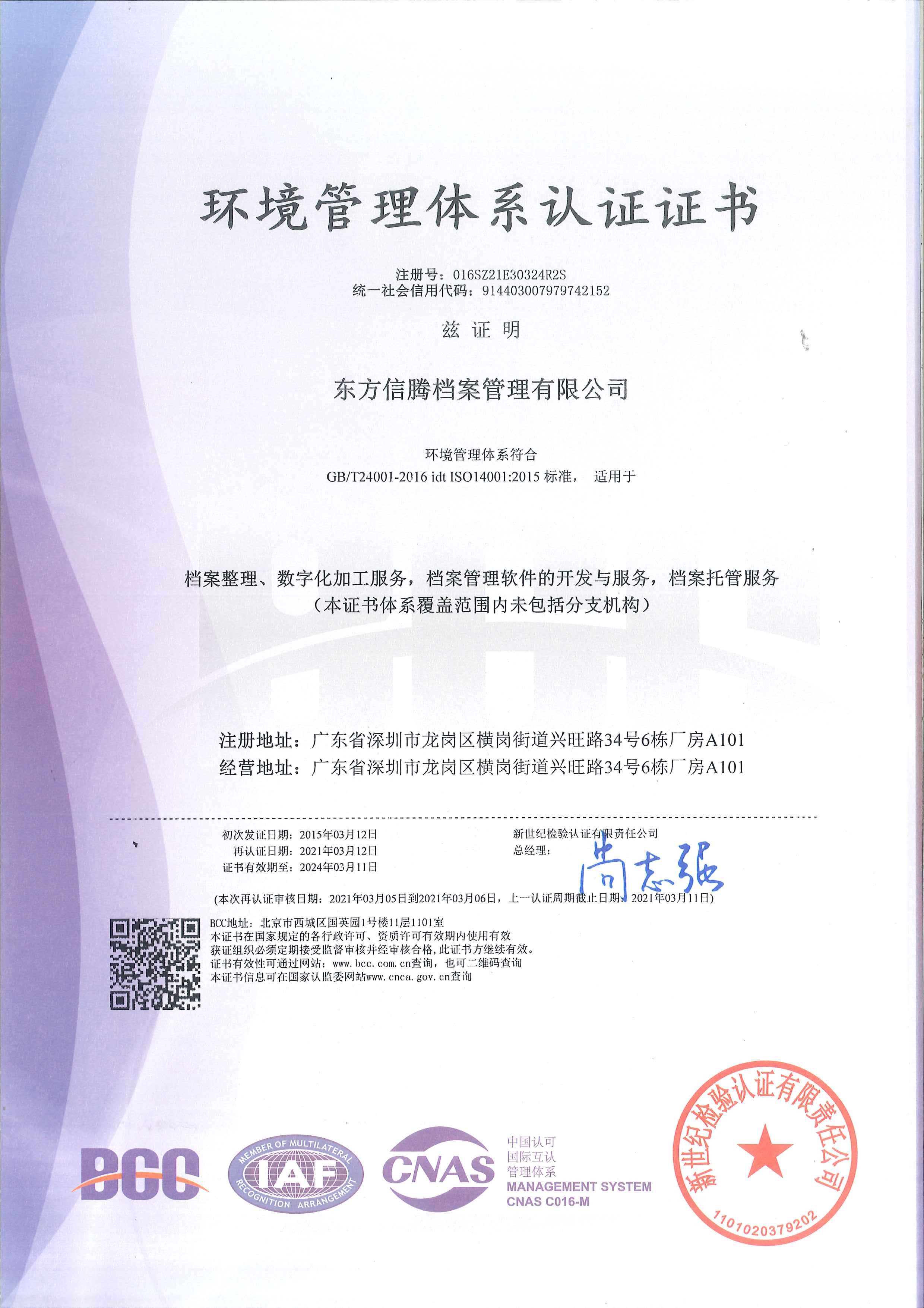 • 环境管理体系认证证书