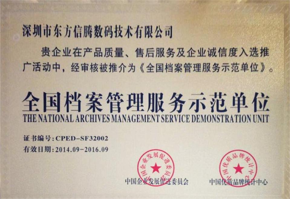 • 全国档案管理服务示范单位